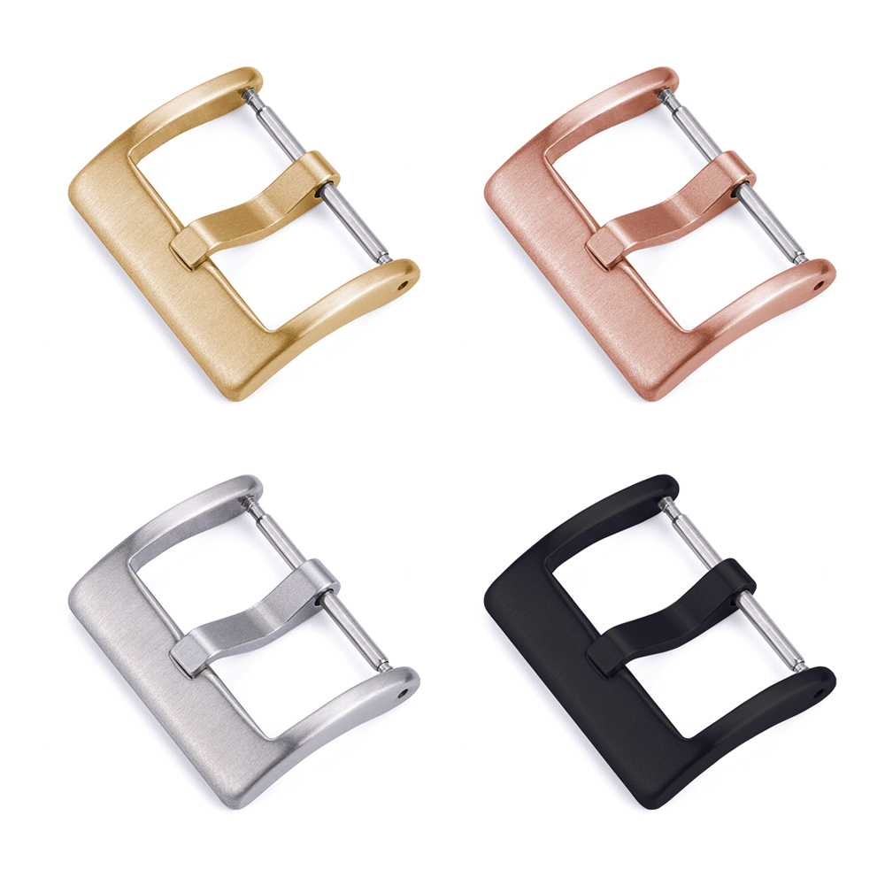 Die CHROONOO-Schließe hat einen 3-mm-Stift und ist in zwei verschiedenen Größen erhältlich: 18 mm und 20 mm. Außerdem gibt es sie in fünf verschiedenen Ausführungen: Silber poliert, Silber gebürstet, Schwarz gebürstet (PVD), Gold gebürstet und Roségold gebürstet.