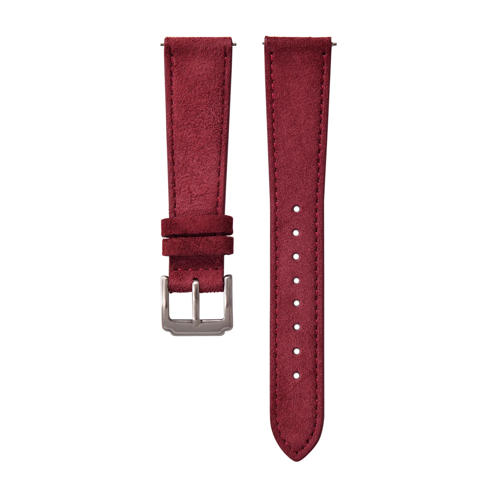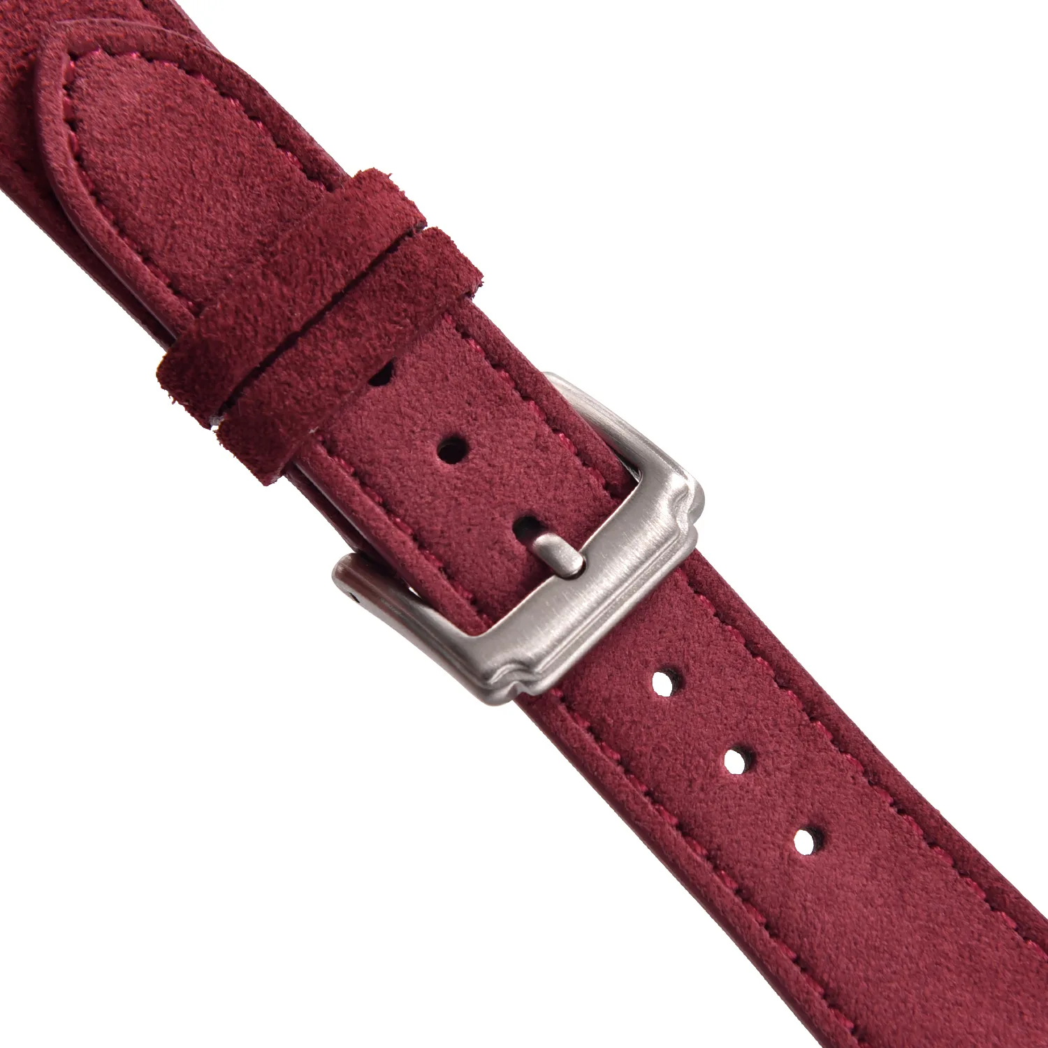 Uhrenarmband (Wildleder, Wildleder) in Rot von CHROONOO. Dieses Armband wird aus Rindsleder angefertigt und ist in 8 Farben und 4 Stegbreiten erhältlich. Schließe: Silber gebürstet.