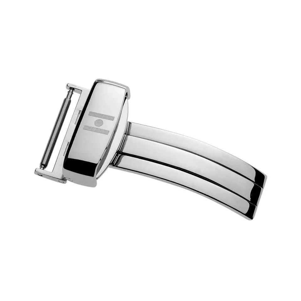 Einfach gefaltete HIRSCH Faltschließe Plus aus Edelstahl in Silber poliert. Schont das Bandmaterial und sorgt für einen eleganten, sicheren Sitz am Handgelenk. Entwickelt für höchsten Tragekomfort und passend zu vielen HIRSCH-Armbändern.