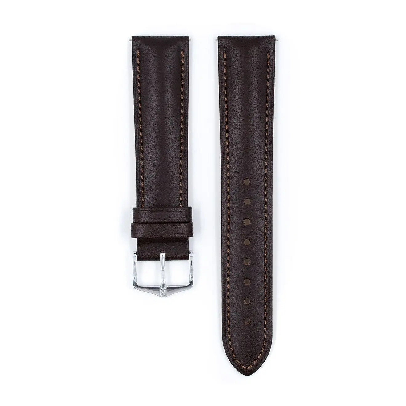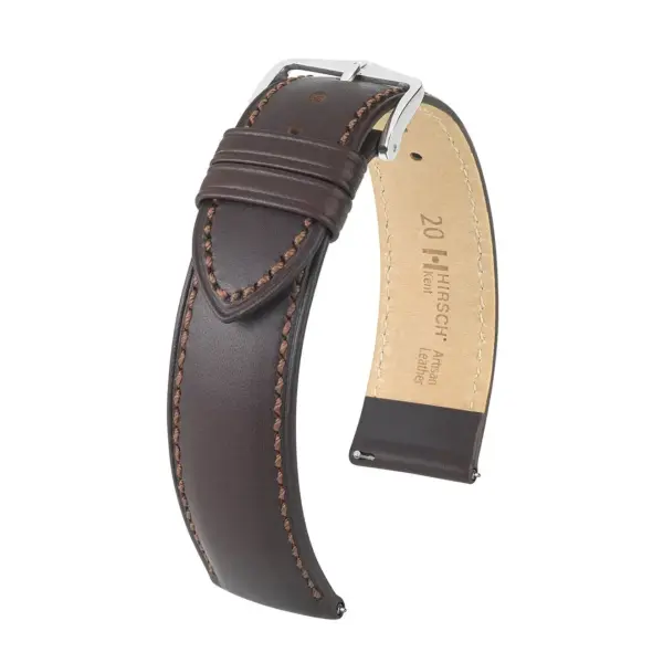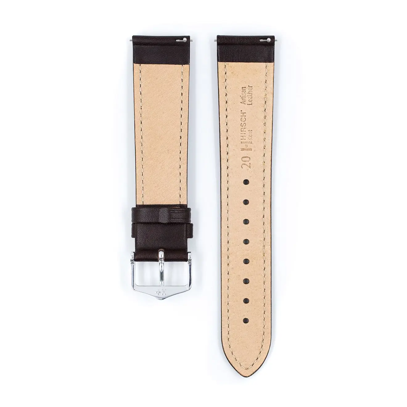 Uhrenarmband (Klassisch, leichte Maserung) in Braun von HIRSCH. Dieses Wechsel-Armband wird aus Kalbsleder (pflanzlich gegerbt) gefertigt und ist in 5 Farben und 5 Stegbreiten erhältlich. Schließe: Silber poliert.