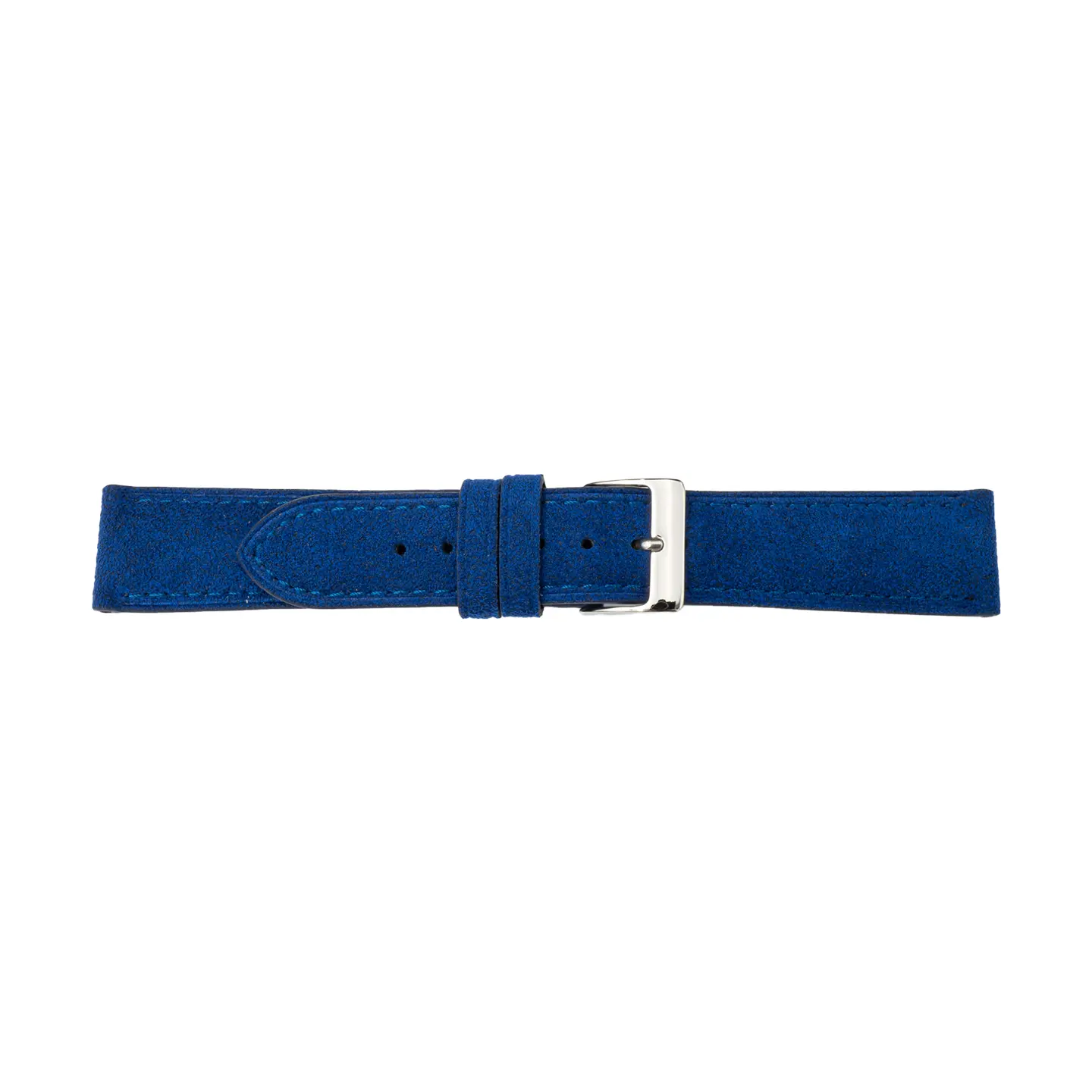 Uhrenarmband (Wildleder, Wildleder) in Blau von Pebro. Dieses Armband wird aus Alcantara angefertigt und ist in 7 Farben und 4 Stegbreiten erhältlich. Schließe: Silber.