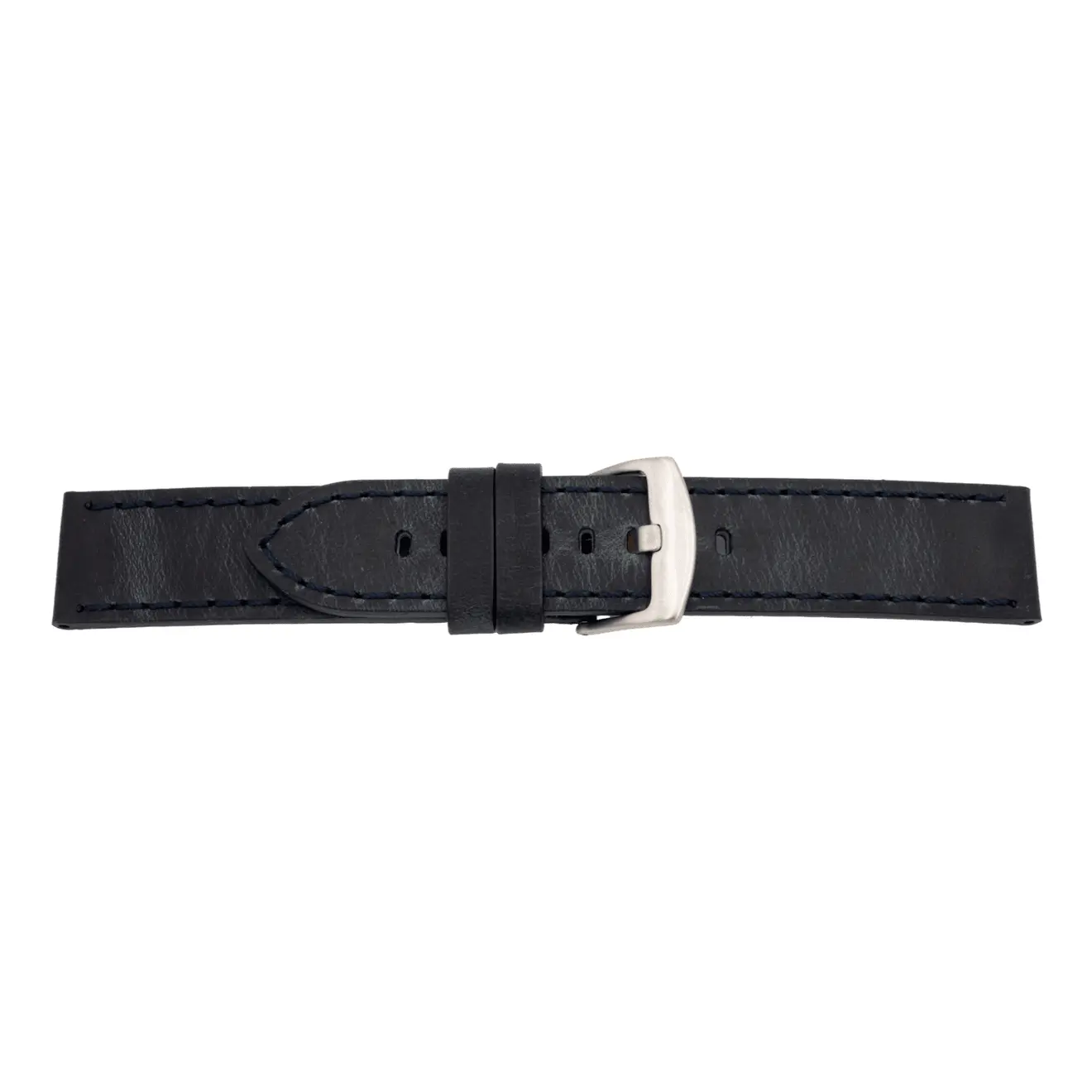 Uhrenarmband (Hohe Belastbarkeit, typische Maserung) in Blau von Pebro. Dieses Wechsel-Armband wird aus Horween® Rindsleder gefertigt und ist in 5 Farben und 20 mm, 22 mm und 24 mm Stegbreiten erhältlich. Schließe: Silber gebürstet.