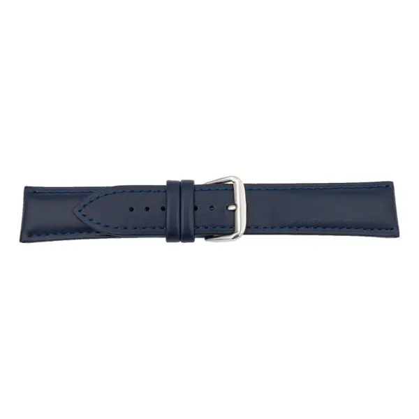 Uhrenarmband (Klassisch, glatt) in Blau von Pebro. Dieses Ersatz-Armband wird aus Kalbsleder hergestellt und ist in 4 Farben und 6 Stegbreiten verfügbar. Schließe: Silber poliert.