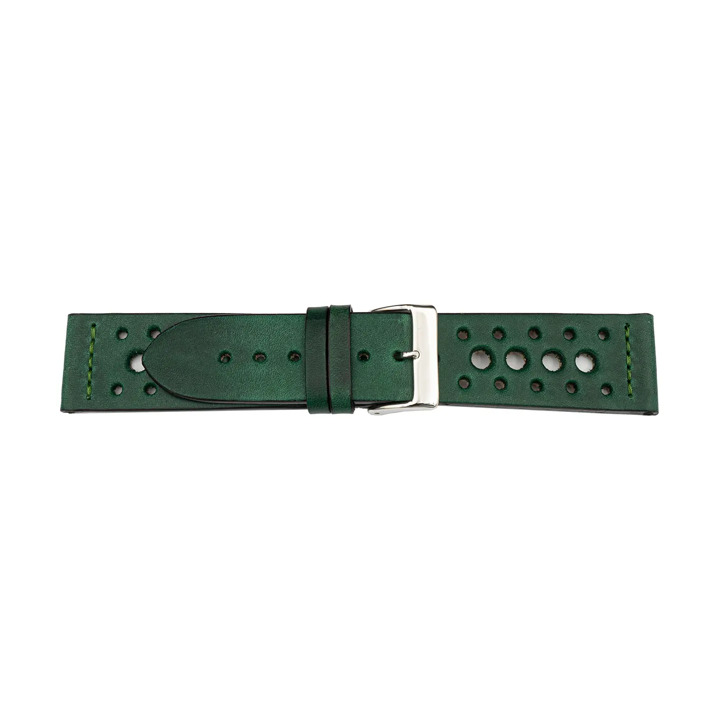 Dieses Armband fängt den Geist der Motorsporttradition in einem raffinierten Format ein. Das perforierte Lederdesign sorgt für optische Abwechslung und Belüftung und ist somit die ideale Wahl für sportliche Uhren mit Retro-Charakter.