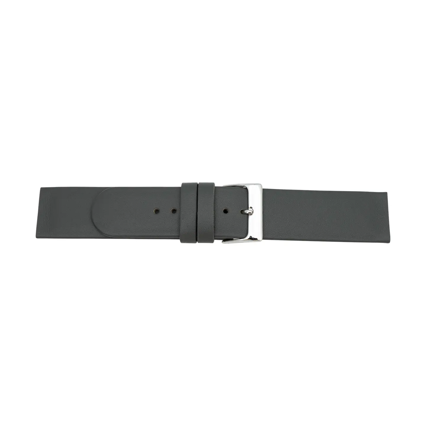 Uhrenarmband (Schraubanstoß, leichte Maserung) in Grau von Pebro. Dieses Ersatz-Armband wird aus Kalbsleder hergestellt und ist in 8 Farben und 6 Stegbreiten erhältlich. Schließe: Silber.