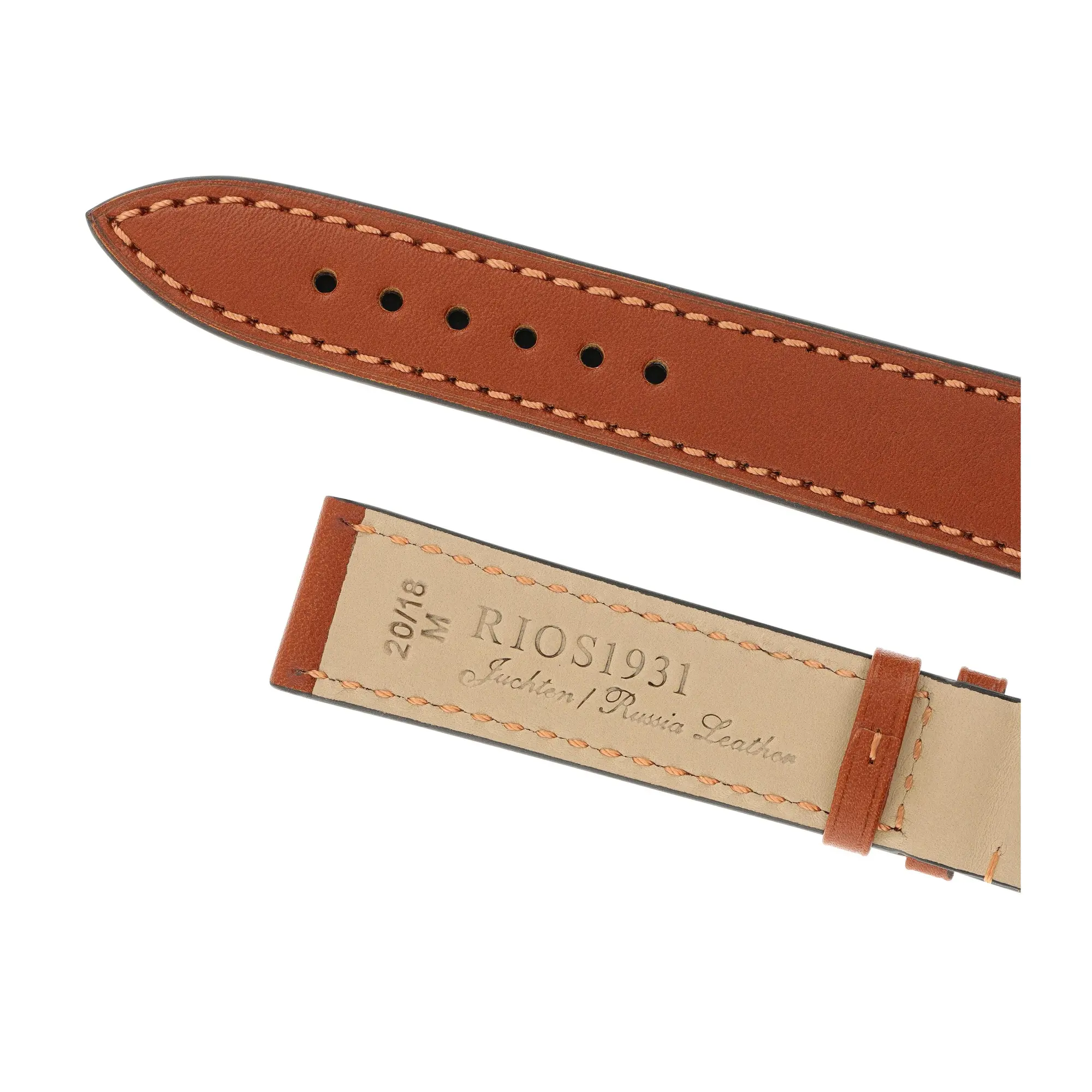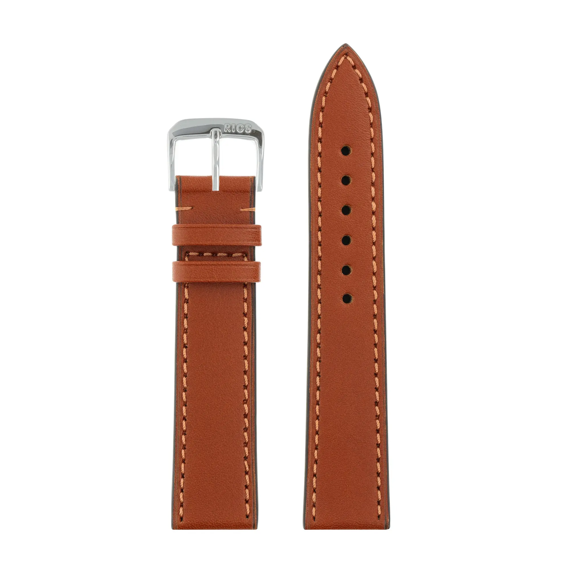 RIOS beschreibt den Charakter des Uhrenarmbandes „Samara“ als naturbelassen, vielseitig und zuverlässig. Das cognacfarbene Uhrenarmband hat ein weitgehend antiallergisches Futterleder und eine hochwertige Dornschließe aus Edelstahl (INOX).